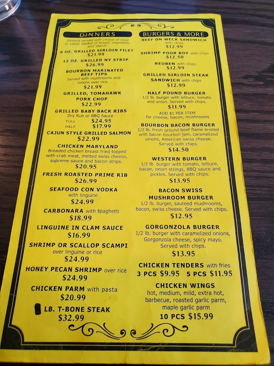 The menu features a mix of familiar favorites and creative takes, perfect for those who appreciate well-prepared, no-fuss meals. Lighter starters like bruschetta bread or warm crab rangoon egg rolls offer a flavorful beginning, while main courses such as Chicken Maryland, the Blackened Blue Steak with Alfredo, or the iconic Beer Battered Haddock Fish Fry provide ample options for a comforting meal any time of day.