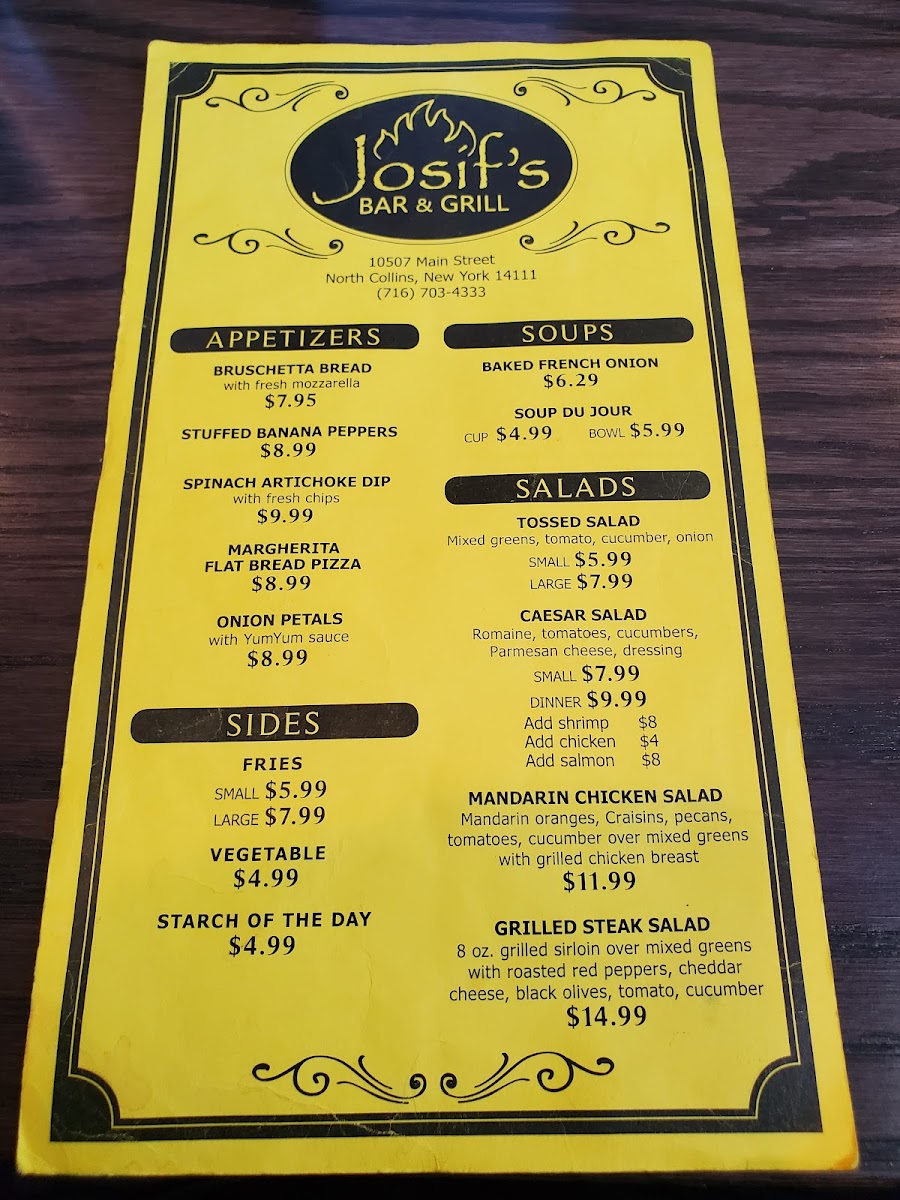Josif's Bar & Grill Menu